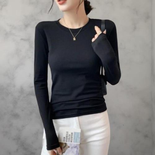 [셀러허브_여성트랜드패션]슬림핏 이너 티셔츠 시크 긴팔 U넥 탑 딥 여리여리
