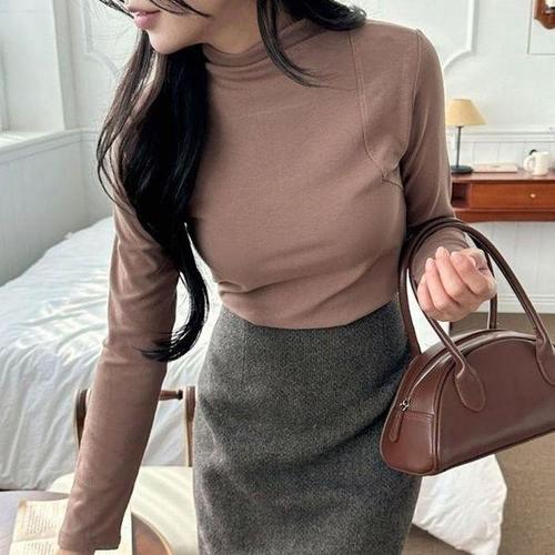 [셀러허브_여성트랜드패션]여자 이너 긴팔 티셔츠 U넥 반목 슬림핏 폴라티 겨울