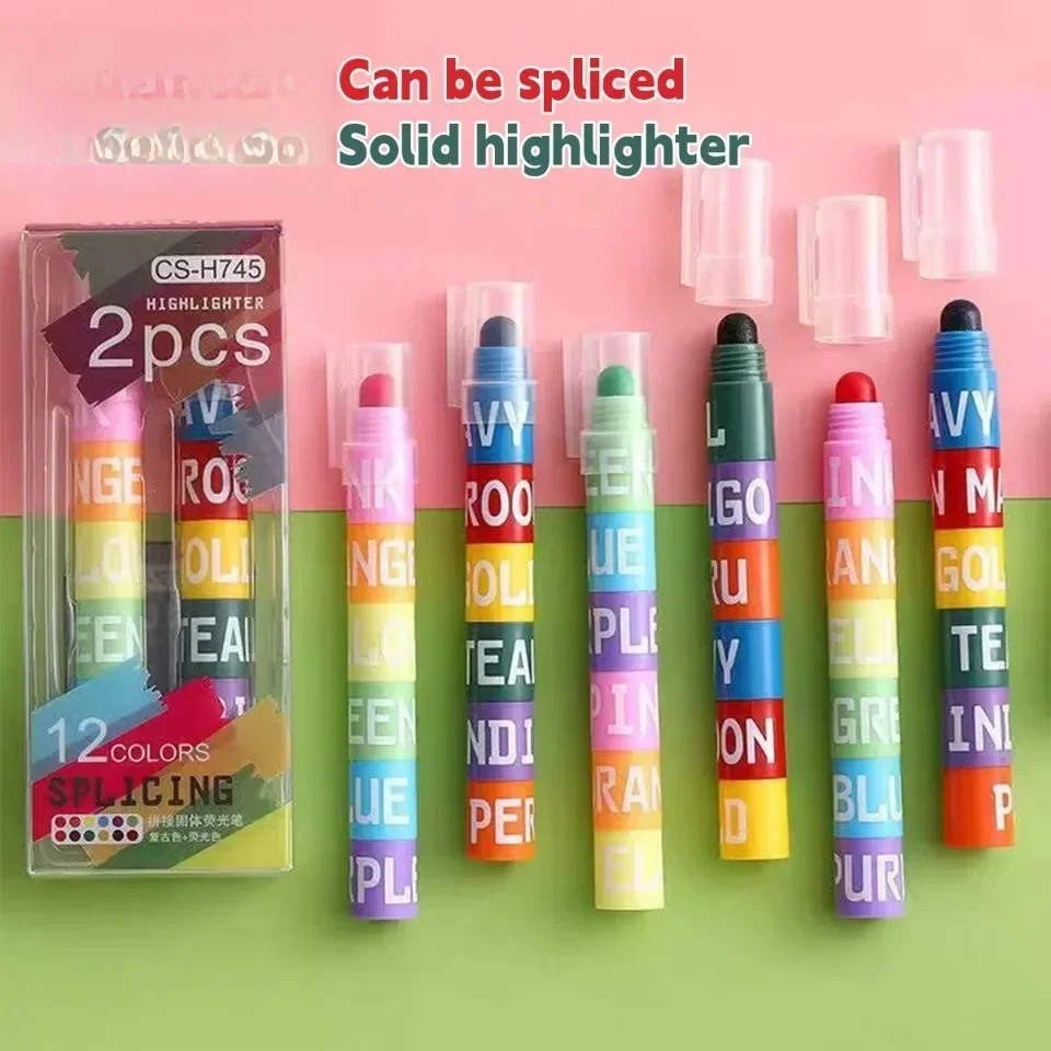 12 색 세트 접합 솔리드 형광펜 멀티 컬러 펜 낙서 펜 키 라인 마커 학교 사무용품 편지지