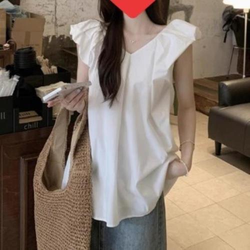 [신상오픈런]여성 프릴 소매 브이넥 기본 블라우스