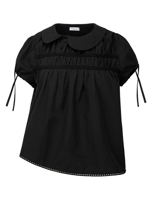 [레이즈미야] 레이시 언발 블라우스 [BLACK]