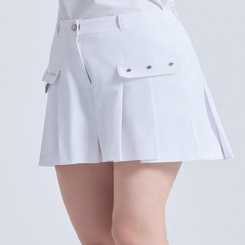 [챌린저]여성 아웃포켓 백 플리츠 하프 팬츠 화이트_CHF1WHP6537WH