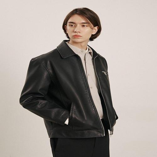 [애드호크]남성) 페이크 레더 트러커 점퍼(HB9LE0139) BLACK _DG
