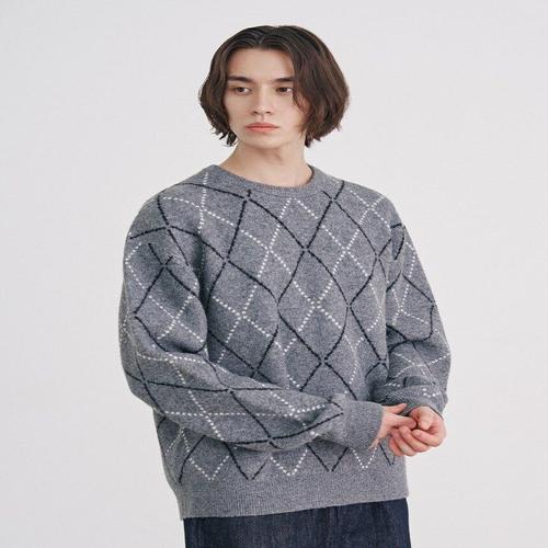 [애드호크]남성) 라운드넥 아가일 오버핏 니트(HBALK0551) M-GREY _DG