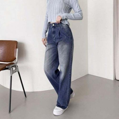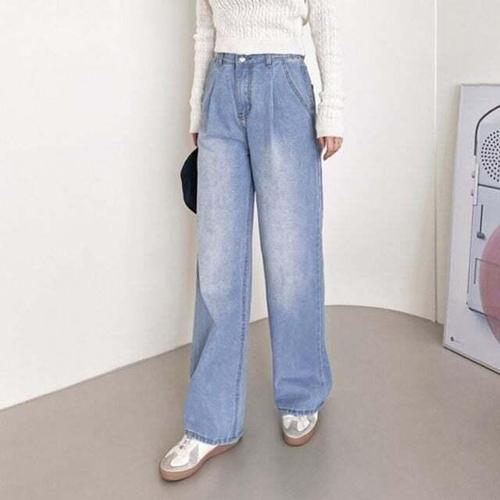 [셀럽하우스]WSF2004 MRUT5887 핀턱 2JMM 워싱와이드 루나 데님청바지 여성