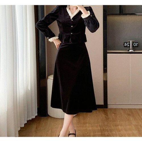 [예쎄 오피스](예쎄) (2종SET)벨벳 프릴 블라우스+스커트(S4WSE027A)
