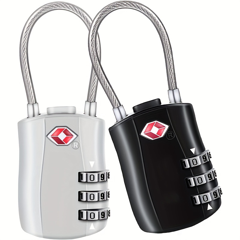 TEMU 2팩 TSA 승인 조합 자물쇠 - 헤비듀티 아연 합금 바디 및 절단 방지 스틸 케이블, 여행용 캐리어/체육관 사물함/자전거 잠금장치용 3자리 번호 조합 자물쇠 (검정) | 다목적 여행 보안 액세서리 | 내구성 있는 조합 자물쇠