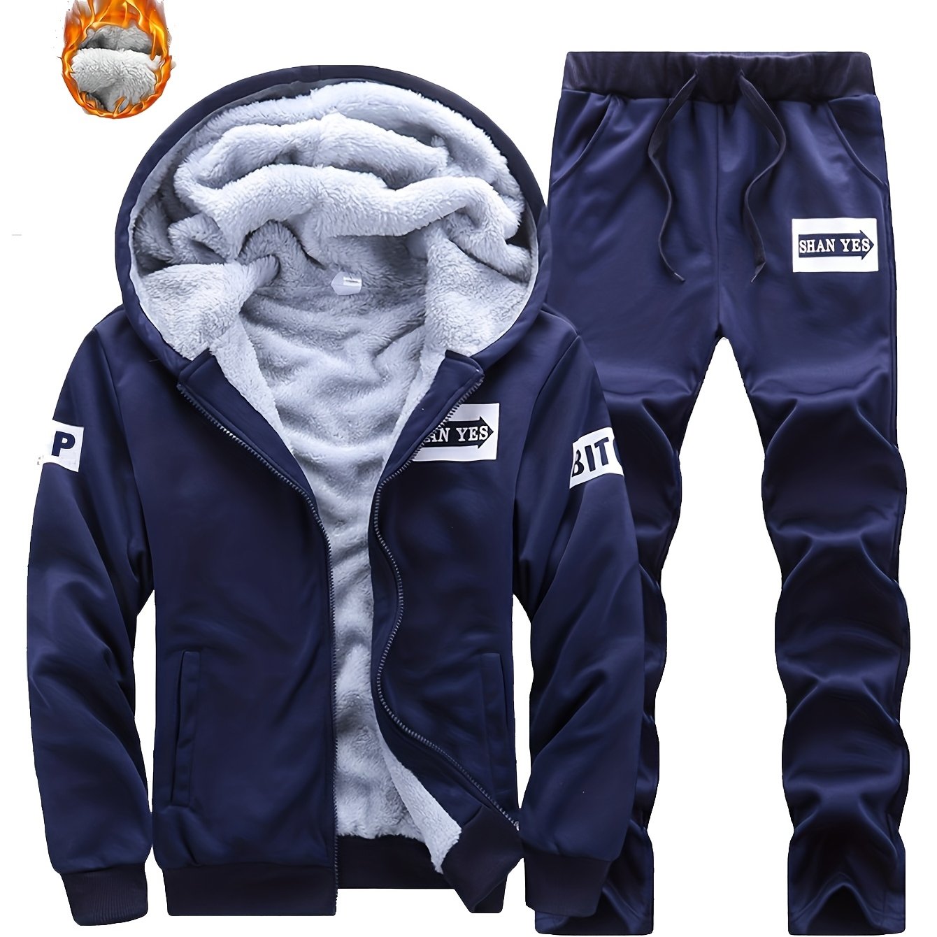 TEMU 남성용 겨울 안감 두꺼운 보온 자켓과 트렌디한 조거 팬츠 투피스 스포츠웨어 세트